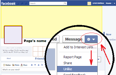 Once you are in the page you want to unlike, click on the gear icon that is located at the right hand extreme below the big cover picture and then, in the appearing menu, click on the “Unlike” option.